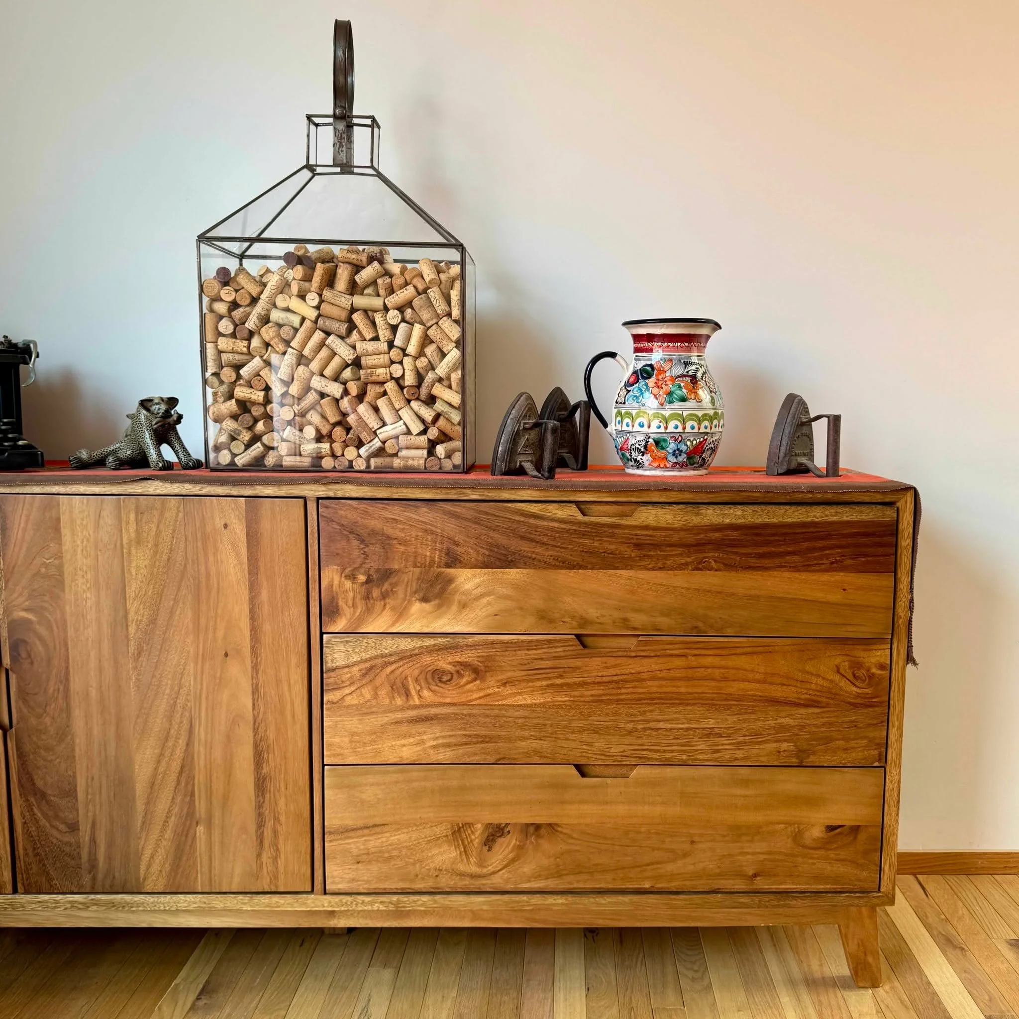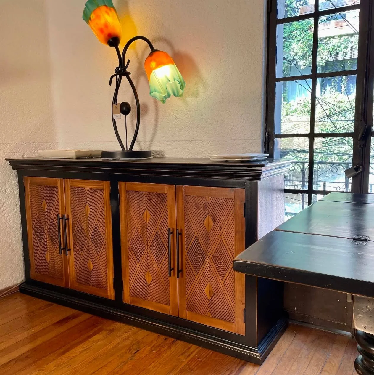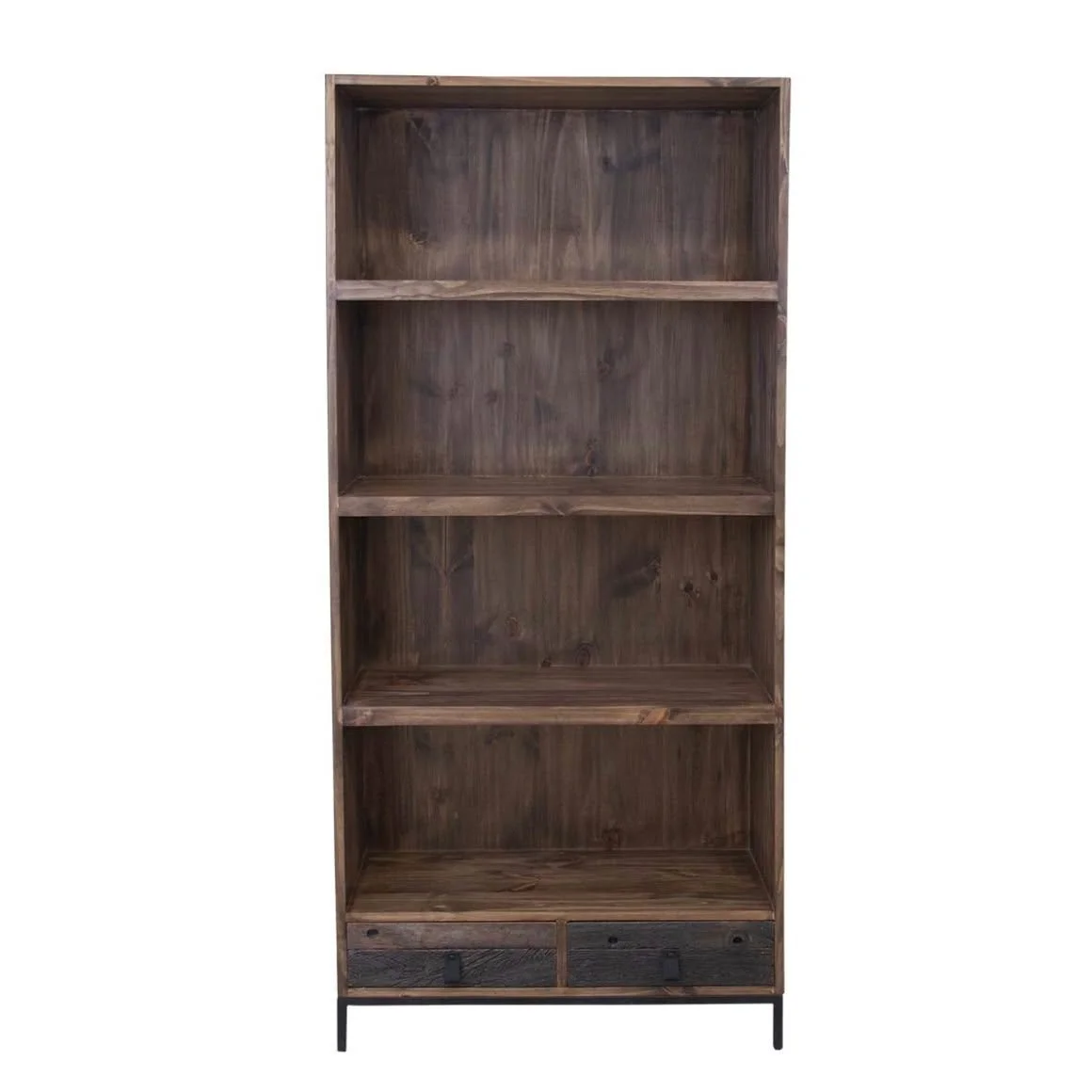 Diseño contemporánea en madera pino en tono nogal con base y herrajes de acero .